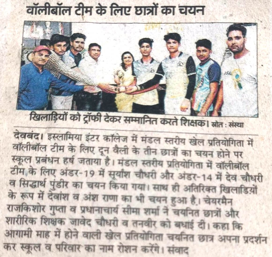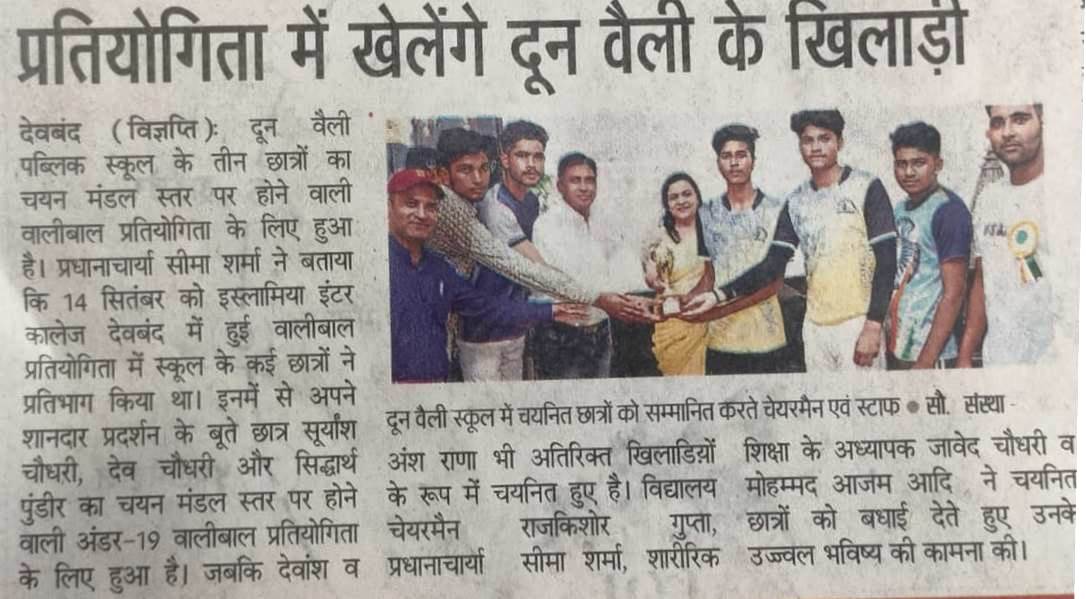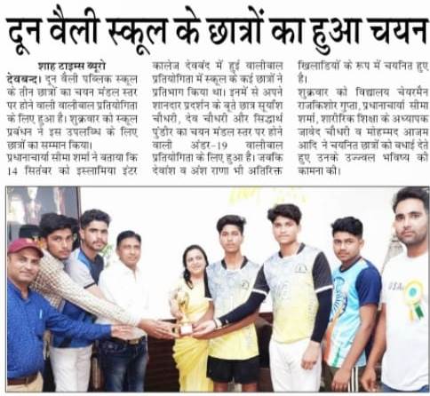 मंडलीय स्तर पर वॉलीबॉल प्रतियोगिता में खेलेंगे दून वैली के खिलाड़ी।