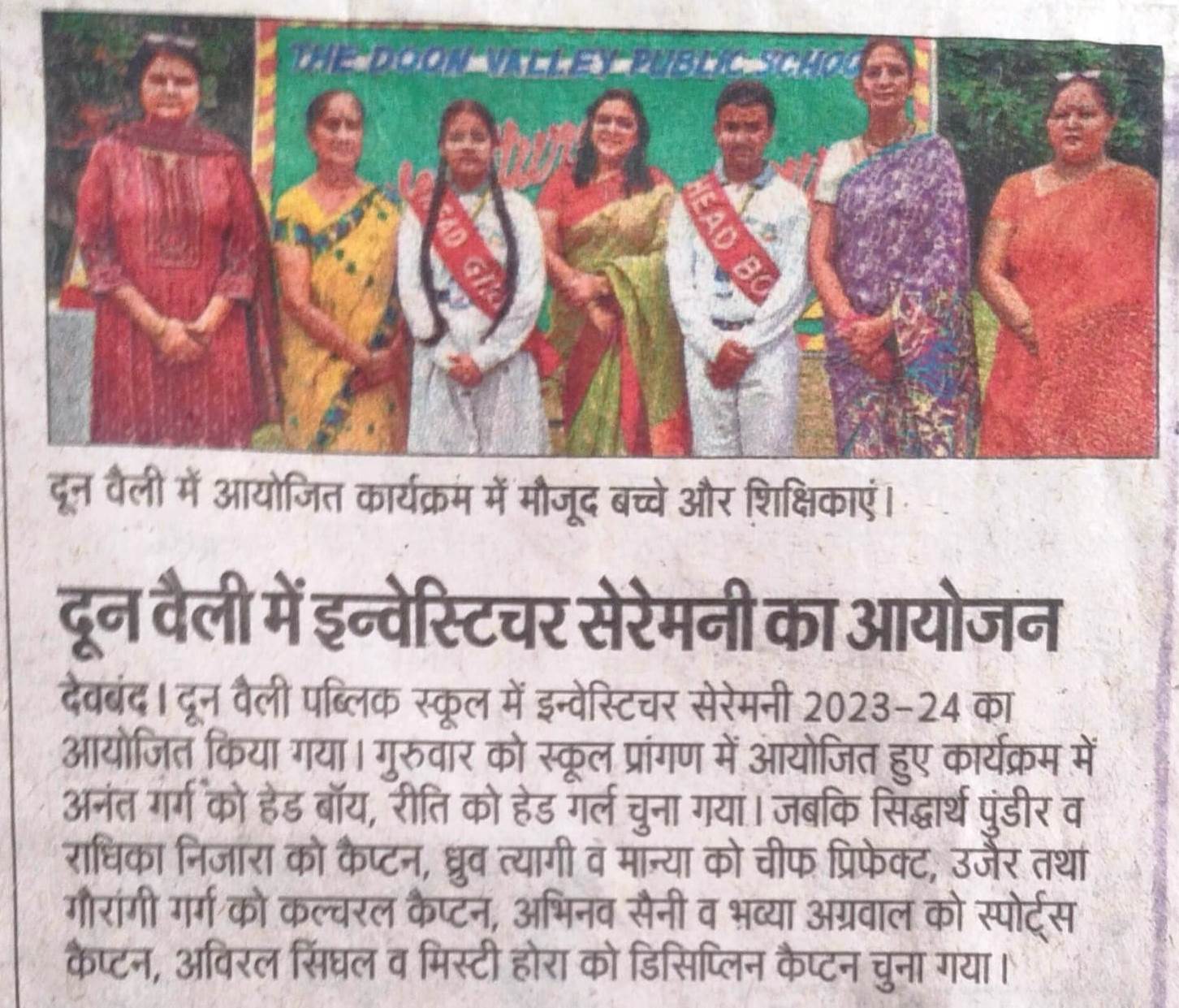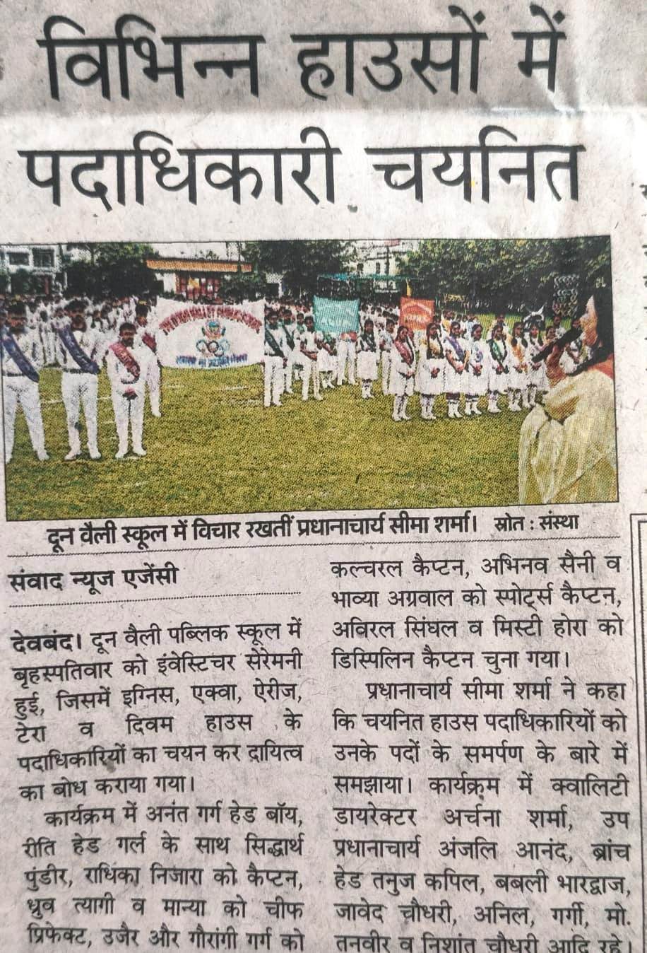 दा दून वैली पब्लिक स्कूल में इन्वेस्टिचर सेरेमनी का आयोजन किया